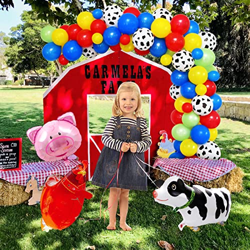 Host an unforgettable farm-themed celebration with the Golray 91Pcs Farm Animals Party Decorations Supplies kit. This comprehensive set is perfect for a 1st baby shower or birthday party for kids and girls. It includes a charming farm barn animal backdrop, a fun cow print tablecloth, and a complete balloon arch garland kit with horse balloons. Transform your party space into a delightful farmhouse setting, creating a joyful and immersive experience for your guests and the little one celebrating. Everything needed for a complete farm animal party theme is included, making decoration easy and fun.