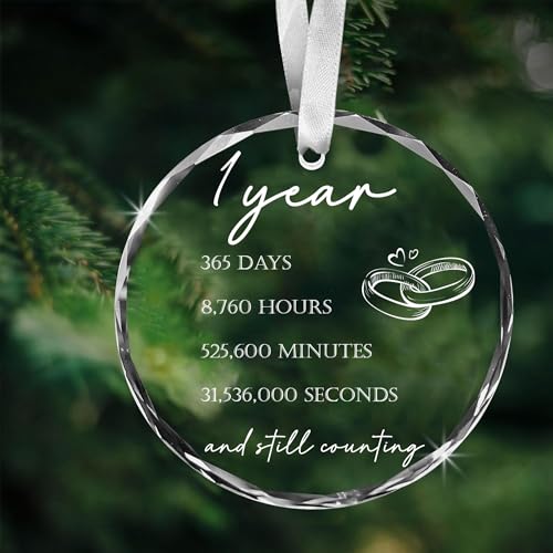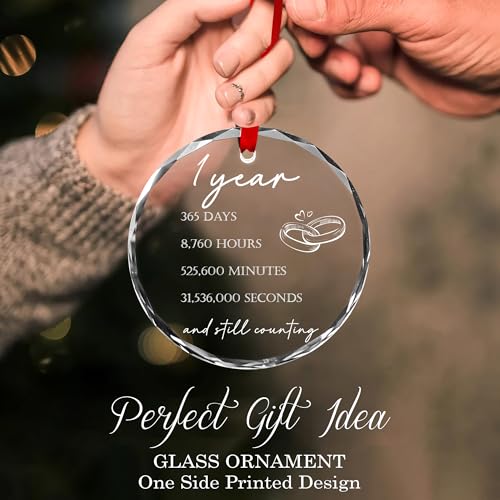 Commemorate your 1st wedding anniversary with this elegant glass ornament. A perfect keepsake gift for couple, wife, or husband to celebrate one year of marriage.