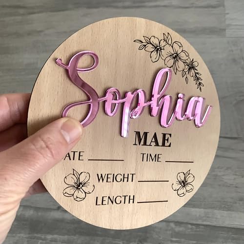 Beautiful floral birth stats sign for newborns. Perfect baby announcement, gender reveal, or baby shower gift for new moms. Custom plaque.