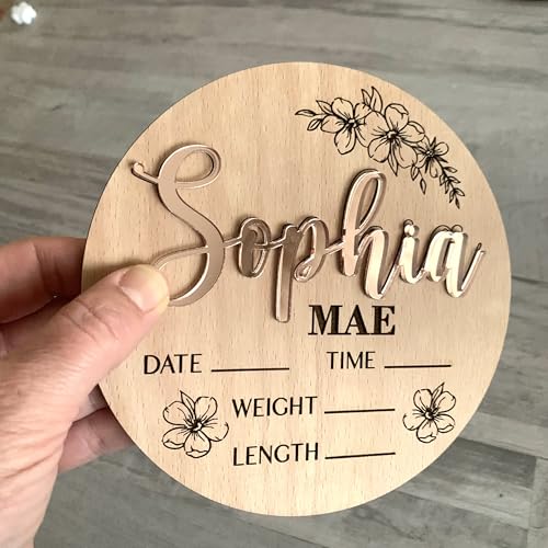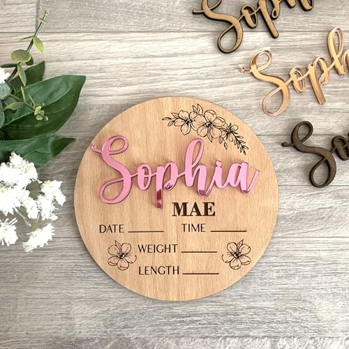 Floral Newborn Birth Stats Sign – Custom Baby Announcement Plaque