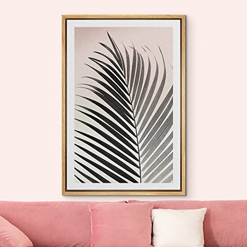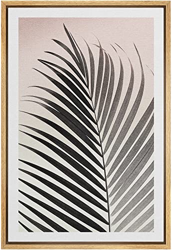 Framed Pastel Duotone Jungle Palm Leaf Art 24×36 – Natural