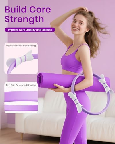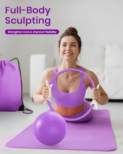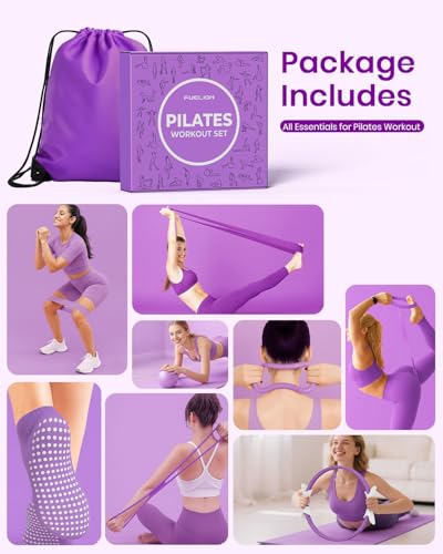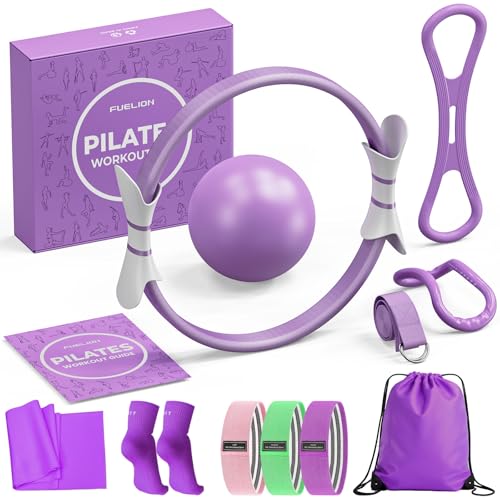 Enhance strength, toning, and flexibility with Fuelion Pilates Ring Set. Includes 14” Magic Circle, resistance bands & mini ball. Ideal home workout.