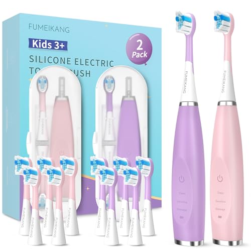 Make brushing fun and effective for your little ones with the FUMEIKANG Kids Electric Toothbrushes 2 Pack. Designed specifically for boys and girls aged 3-12, these smart sonic toothbrushes come in vibrant purple and pink. They feature gentle yet powerful sonic vibrations to ensure a thorough clean, helping to establish good oral hygiene habits early on. This 2-pack is perfect for siblings or as a spare, providing a reliable and engaging brushing experience.