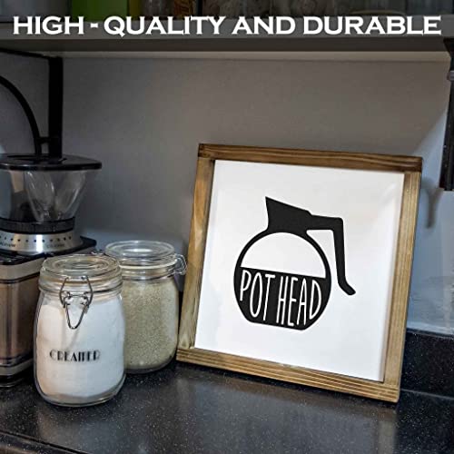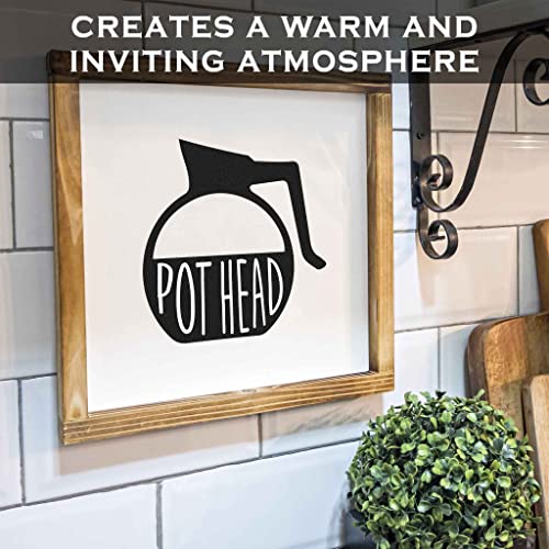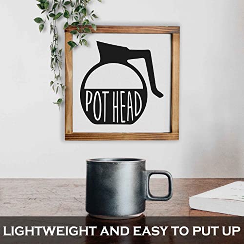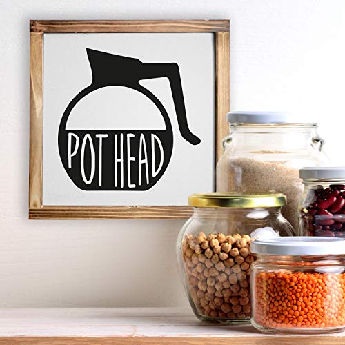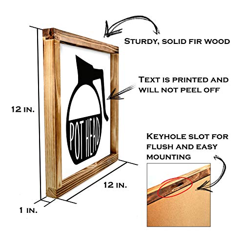 Add humor to your kitchen or coffee station with this funny 12×12 inch ‘Pot Head’ sign. Perfect coffee wall decor for enthusiasts and homebodies.