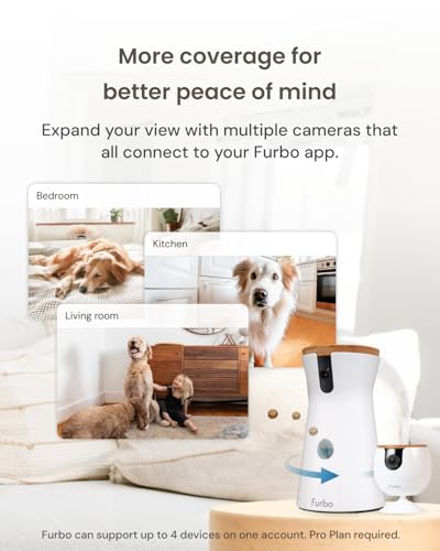 Secure your home & monitor dogs with Furbo 360° Dog Camera + Mini bundle. Features Nanny Pro Subscription for safety alerts, rotating view, 2-way audio & night vision. Keep pets safe.