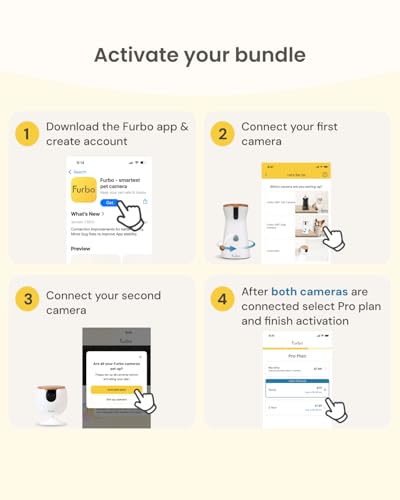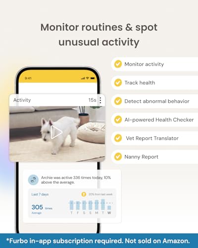 The Furbo 360° Dog Camera + Mini bundle provides ultimate peace of mind for dog owners. This comprehensive security system includes two cameras for wider coverage and comes with a Nanny Pro Subscription, offering advanced dog safety and home security alerts. Enjoy a rotating 360° view, crisp night vision, and two-way audio to interact with your pets from anywhere via the phone app. Receive real-time barking alerts, person alerts, and even emergency alerts. Note: A new Nanny Pro subscription is needed at setup to unlock all premium features, ensuring your furry friends are always safe and your home secure.