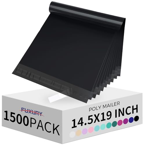 1500 Fuxury 14.5×19″ black poly mailers. Waterproof & tear-resistant shipping envelopes with strong adhesive. Ideal for clothing & small business packaging. Secure & efficient.