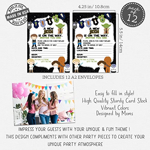 Galaxy Far Far Away Baby Shower Invitations (12-Set)