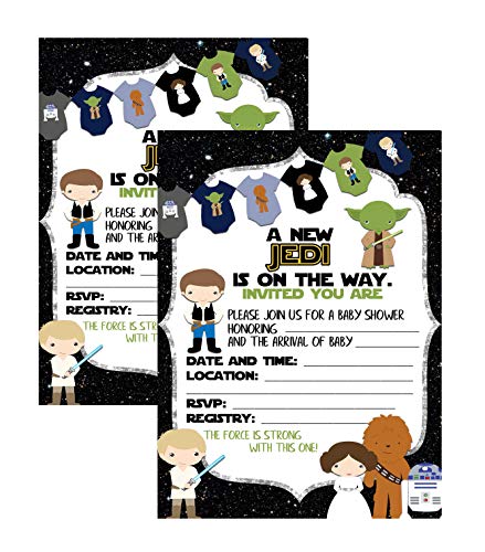 Embark on an an ‘Epic Baby Shower’ adventure with our ‘From A Galaxy Far Far Away’ themed character invitations from Silly Goose Gifts. This set of 12 unique invite cards, complete with matching envelopes, is perfect for parents-to-be who love a touch of intergalactic charm. Announce your joyous arrival with a theme that’s out of this world, setting the tone for a memorable and fun baby shower. These high-quality invitations are designed to impress your guests and get them excited for the celebration. Make your baby shower supplies truly special and unforgettable with these distinctive character invitations.