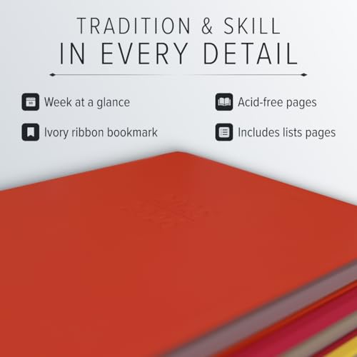 Stay impeccably organized with the Gallery Leather Family Planner 2025-2026. This 18-month planner, elegantly bound in a vibrant Caribbean Red, combines a calendar and notebook, making it ideal for busy moms managing family schedules, appointments, and daily tasks. Its stylish white page edges add a touch of sophistication, while the durable leather cover ensures longevity. Perfect for keeping track of school events, birthdays, and personal reminders, this 9×7-inch planner is a beautiful and practical tool for every household.