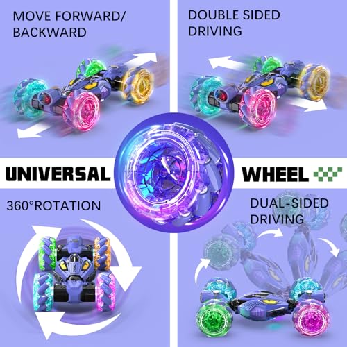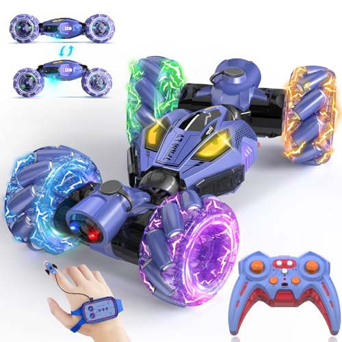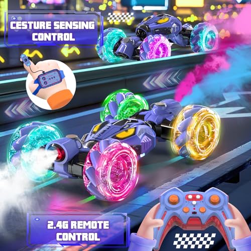 Unleash excitement with the Gesture Sensing RC Stunt Car! This innovative 4WD remote control vehicle offers an immersive play experience for boys and girls aged 6-12. Perform incredible 360° rotations and navigate any terrain with its robust off-road design. The car transforms and responds to hand gestures, adding a unique interactive element. With vibrant lights and engaging music, it provides endless hours of fun. Ideal for birthdays, holidays, or any occasion, making it the best gift for kids who love action-packed remote control toys and vehicles.