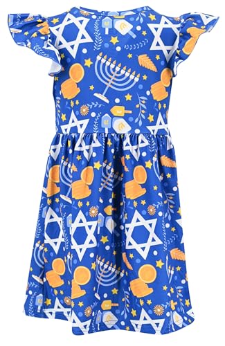 Let your little girl shine this Hanukkah with the Unique Baby Girls Petal Sleeve Hanukkah Dress. This festive blue dress features a charming Hanukkah star design and delicate petal sleeves, perfect for holiday celebrations. Available for toddlers and big kids, including a 6Y size, it offers a comfortable fit for all-day wear during family gatherings and special events. Made with quality fabric, this outfit is designed to make her feel special and joyous throughout the Festival of Lights.