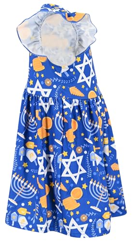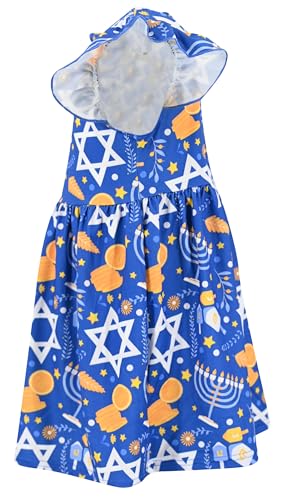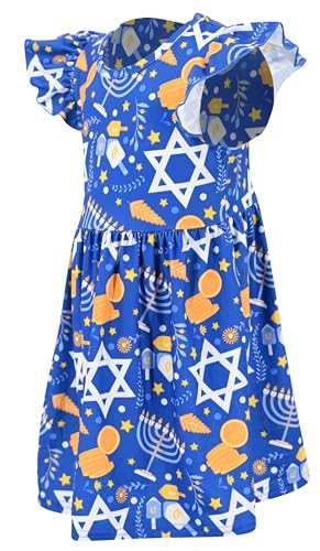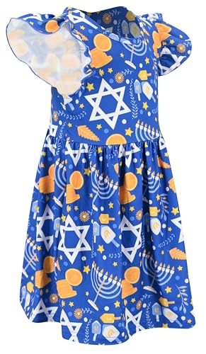Celebrate Hanukkah in style! Adorable blue petal sleeve dress with Hanukkah star design for baby girls, toddlers, and big kids. Perfect for holiday festivities.