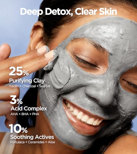 - Deep detox clay mask clarifies pores & removes blackheads.