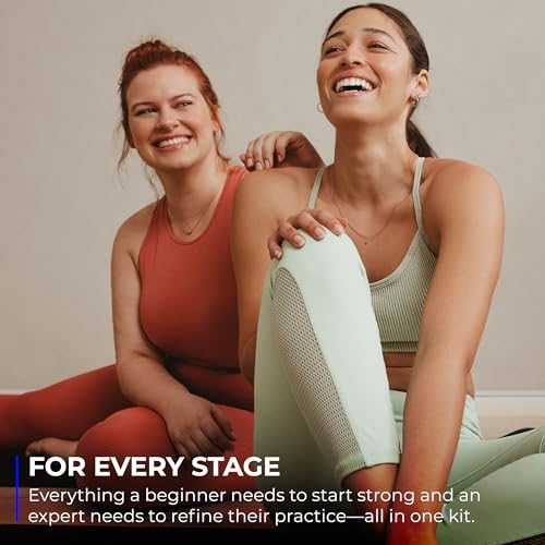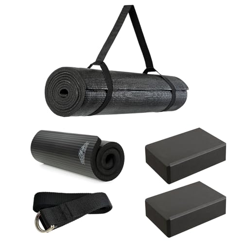 The Hello Fit 6-Pack Studio Exercise Starter Kit provides all the essential accessories for a complete and comfortable yoga practice. This comprehensive kit includes a durable 5mm thick black yoga mat (72″ x 24″) with a convenient carry strap, making it easy to transport to school, studio, or for home use. You’ll also find a 6ft D-ring yoga strap for extending reaches and deepening stretches, two sturdy 3″ yoga blocks for support and alignment, and a comfortable knee pad for extra cushioning during sensitive poses. Perfect for beginners and experienced yogis alike, this kit enhances every aspect of your routine, promoting better form, balance, and overall well-being.