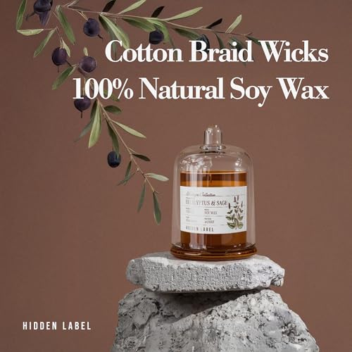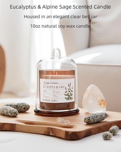 Discover tranquility with the Hidden Label Eucalyptus & Alpine Sage Scented Candle. This 10oz natural soy wax candle, housed in an elegant clear bell jar, offers a refreshing and calming aroma perfect for creating a serene environment. Its non-toxic formula is ideal for aromatherapy sessions, enhancing spa experiences, yoga, or meditation. Light this candle to alleviate stress, clear your mind, and promote a sense of well-being. A thoughtful gift for anyone seeking relaxation and a peaceful home.
