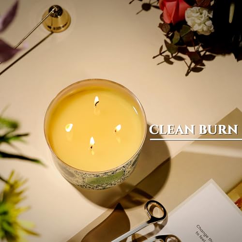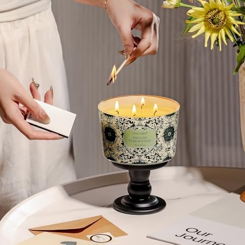 Luxurious 18oz, 4-wick soy wax candle with English Pear & Suede scent. Perfect for home aromatherapy, parties, relaxation, and bohemian decor. Long-lasting fragrance.