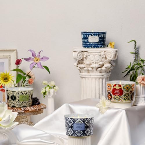 Elevate your home ambiance with the HomeLights 18oz English Pear & Suede Scented Soy Wax Candle. Featuring four wicks for an even, powerful burn, this aromatherapy candle fills large spaces with its sophisticated and captivating fragrance. The elegant design, inspired by bohemian natural textures, makes it a stylish addition to any home decor. Ideal for creating a relaxing atmosphere, enhancing parties, or gifting, this long-lasting candle offers a premium sensory experience for those who appreciate fine home scents.