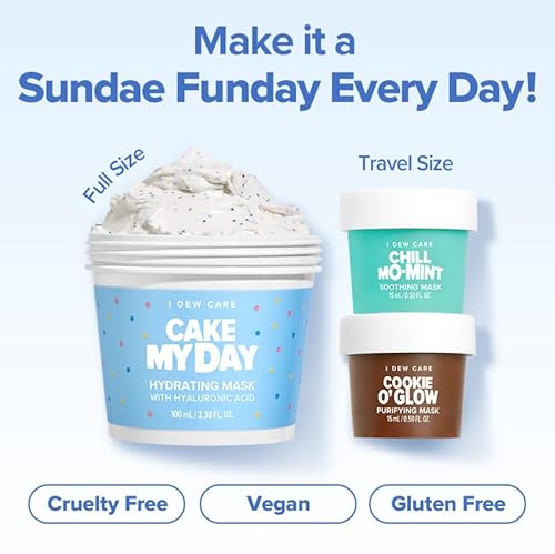 Fun I DEW CARE Sundae Scoop wash-off face mask set for girls & teens. Moisturizing, soothing, and hydrating with Hyaluronic Acid. Travel mini gift.