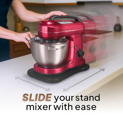 The Ibyx Elegant Sliding Tray is an innovative solution for organizing your kitchen and protecting your countertops. Specifically designed to be compatible with 4 Qt Hamilton Beach Stand Mixers, it also works perfectly with other heavy kitchen appliances such as coffee makers, toasters, and blenders. The smooth sliding mechanism allows you to easily pull out or push back your appliances, reducing strain and preventing scratches on your surfaces. Its sleek black design adds a touch of elegance to any kitchen decor.