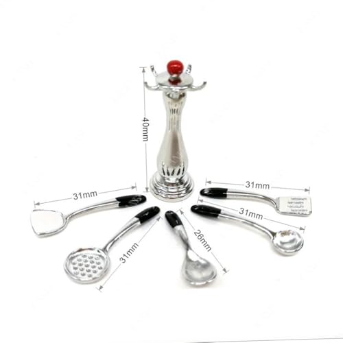 iLAND 1/12 scale dollhouse miniature kitchen cooking set. Includes mini metal pots, pans & turners with stand for realistic play.