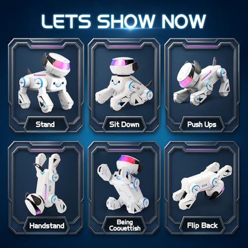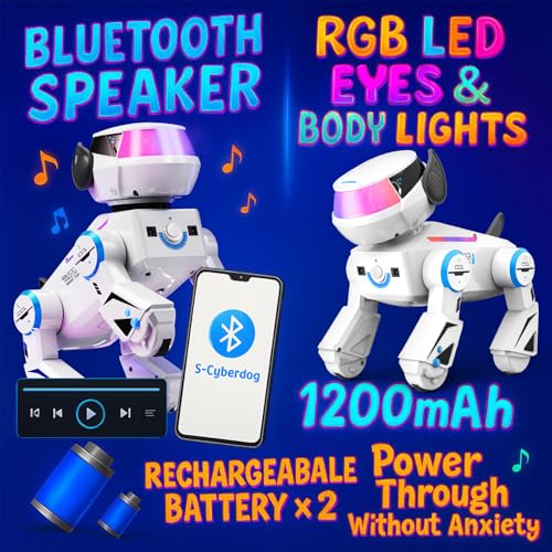 Programmable RC robot dog for kids 3-12 with LED eyes, music, dance, touch sensors & Bluetooth speaker. USB rechargeable. Perfect interactive gift.