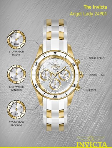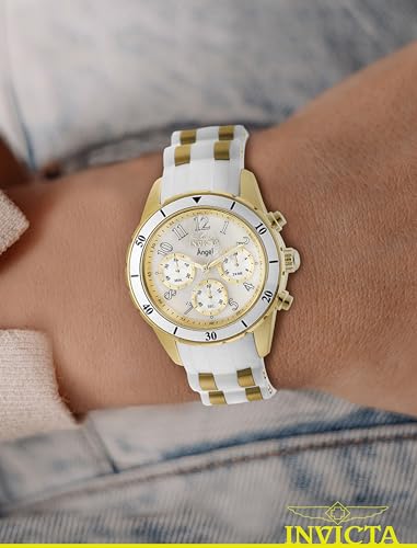 Elegant Invicta Women’s 24901 Angel watch with quartz movement, analog display, and pristine white dial. Perfect for everyday sophistication.