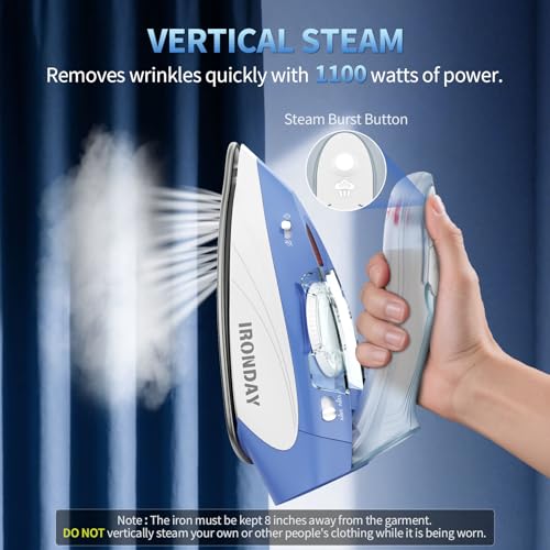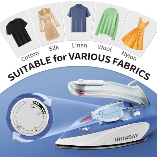 IRONDAY Mini Travel Iron: Dual voltage, steam, temp control, non-stick soleplate. Perfect portable iron for clothes, crafts, travel.