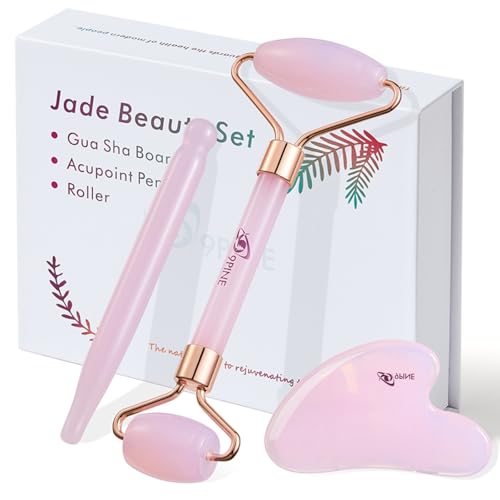 Enhance skincare routine with 9PINE Jade Roller & Gua Sha set. Lymphatic drainage, reduces puffiness for face, neck, eyes. Perfect self-care gift for all.