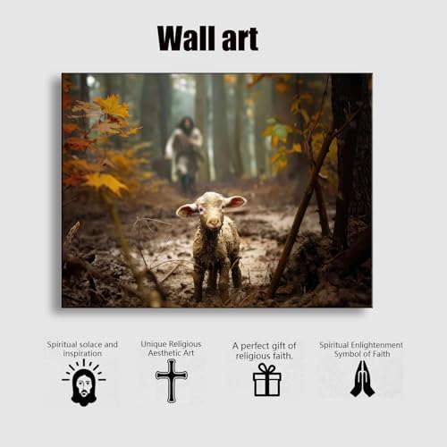 Discover a truly meaningful piece of religious art with the Jesus and Lamb canvas poster. This heartwarming depiction of Jesus running after the lost lamb serves as a powerful reminder of faith, hope, and serenity. An ideal baptism gift for boys and girls, or a thoughtful Christian gift for women and men, this wall art transforms any space into a sanctuary. Perfect for prayer rooms, nurseries, or living areas, it brings a sense of peace and spiritual reflection to your home decor. High-quality print on canvas, measuring 24″x16″.