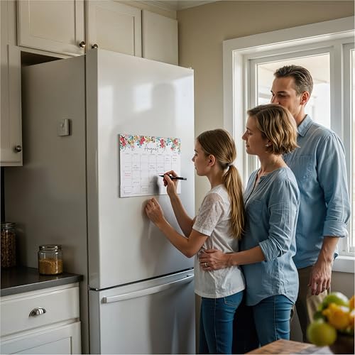 Keep your family’s schedule visible and organized with the Jokotha 2025-2026 Magnetic Calendar for Fridge. This charming 15″ x 12″ calendar features a delightful floral design, adding a touch of elegance to your kitchen. Equipped with strong magnets, it securely adheres to your refrigerator, providing a central hub for family appointments, meal planning, and important dates from July 2025 to December 2026. Simplify your household management with this functional and stylish calendar.