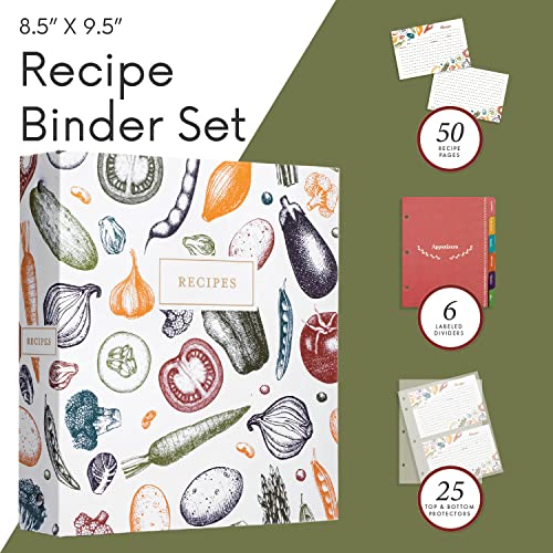 Organize recipes with this Autumn Harvest 3-ring binder kit. Includes 50 cards, 25 sheet protectors, 5 full-page sleeves & 6 dividers. Perfect for home cooks.