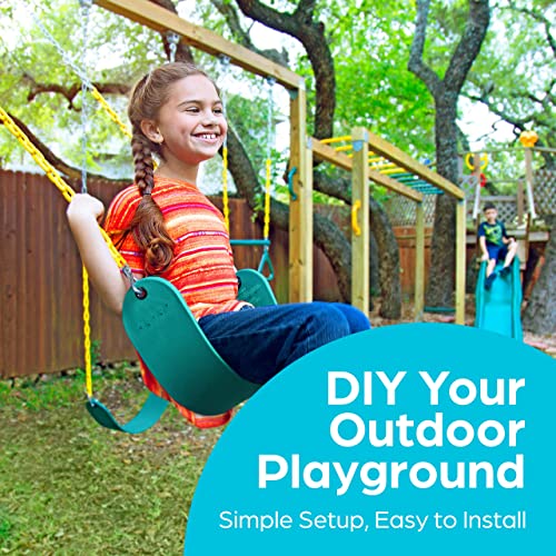 Bring more fun to your backyard with the Jungle Gym Kingdom Trapeze Swing Bar Set. This accessory is designed to enhance existing swing sets and monkey bars, providing hours of outdoor play and physical activity. The set includes an 18″ trapeze swing bar and a 48″ heavy-duty chain with secure locking carabiners, all in an appealing green color. It promotes strength, coordination, and imaginative play, making it a perfect addition for active kids. Easy to install and built for durability, ensuring safe and long-lasting enjoyment.