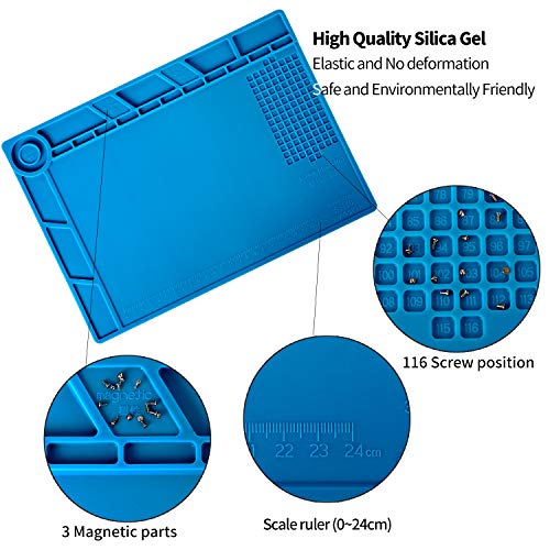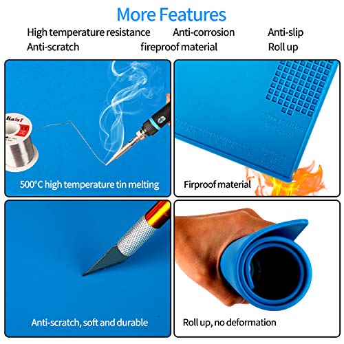 Protect your workbench with the Kaisi S-140 magnetic silicone soldering mat. Heat resistant up to 932F, ideal for electronics, phone repair, BGA, and soldering.