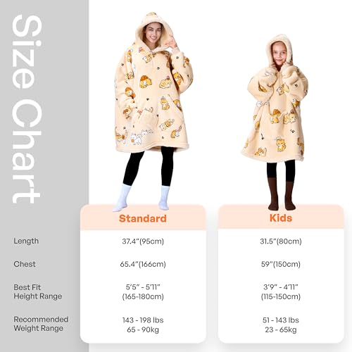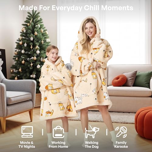 Keep your little ones warm and happy with the Giggling Getup Kids Cat Wearable Blanket Hoodie. This super soft, oversized hoodie is crafted from luxurious sherpa fleece, providing unparalleled warmth and coziness. Designed with long sleeves and a giant front pocket, it’s perfect for lounging, reading, or watching TV. The adorable cat design makes it a fun and irresistible gift for any child. Ideal for chilly evenings, sleepovers, or just relaxing at home, this hooded blanket sweatshirt offers the comfort of a blanket with the practicality of a hoodie for boys and girls.