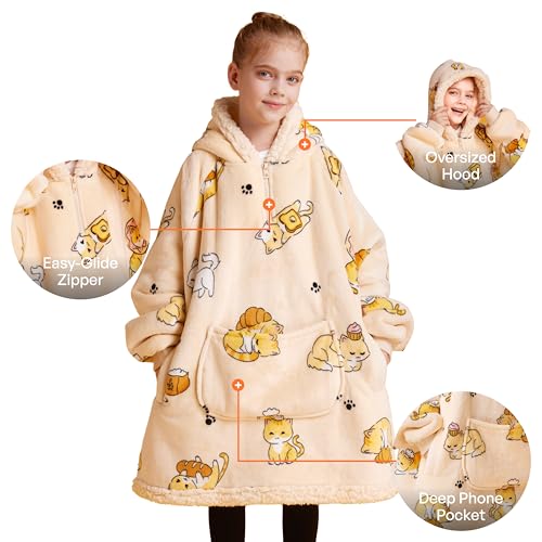Kids Cat Wearable Blanket Hoodie – Cozy Sherpa Fleece