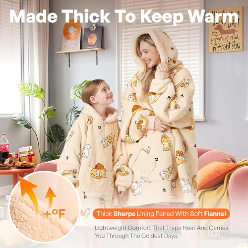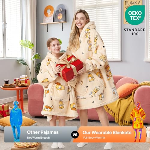 Snuggle up in our kids’ cat wearable blanket hoodie! Warm sherpa fleece, oversized fit, giant pocket, and sleeves for ultimate comfort. Perfect for boys & girls.