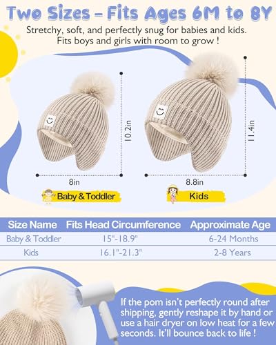 Kids Winter Beanie Hats 3-Pack – Earflaps & Pom Pom