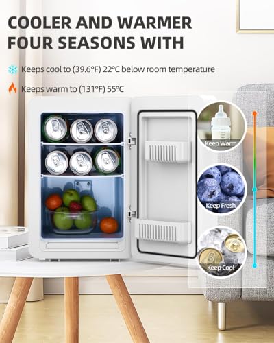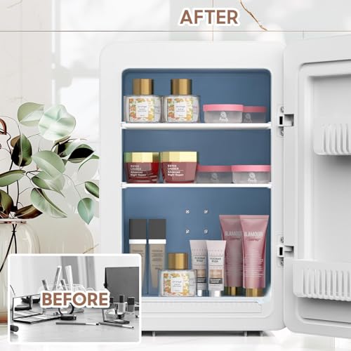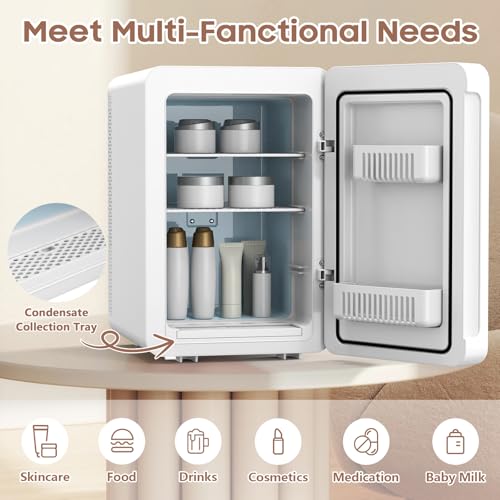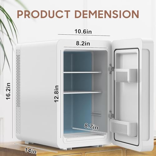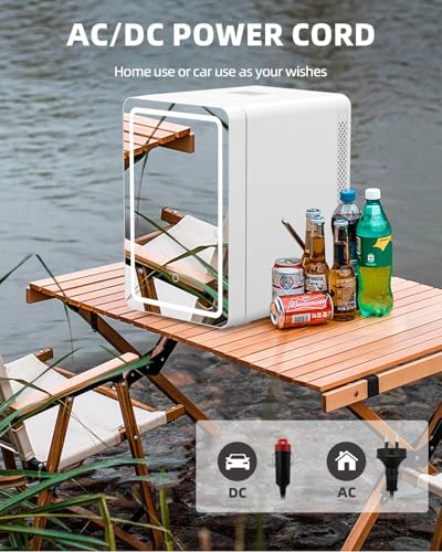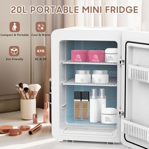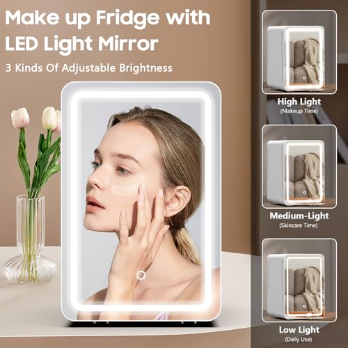 Keep cosmetics fresh with the Kikihuose 20L Skincare Fridge. Features LED mirror, 3-mode dimmable light, cooling/warming, and drip tray. Perfect for beauty essentials at home or in car.