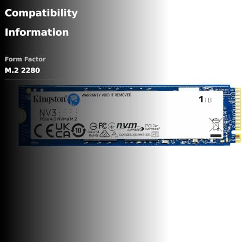 Kingston NV3 1TB M.2 NVMe SSD offers PCIe 4.0 Gen 4×4 speeds up to 6000 MB/s. Upgrade your system for superior performance and quick loading.