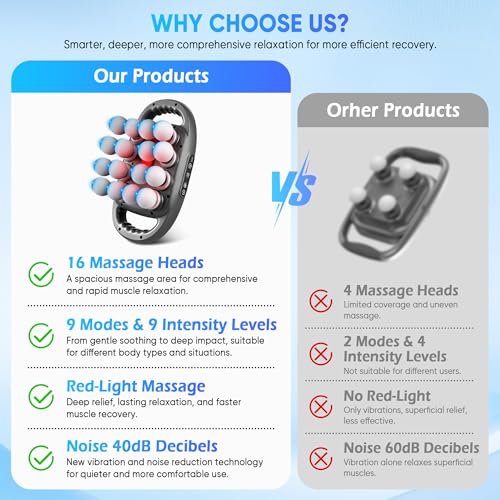 Experience deep tissue relief with the Kocuno 16-Head Massage Gun. Features 9 modes & levels for muscle pain relief in back, shoulders, legs & waist.