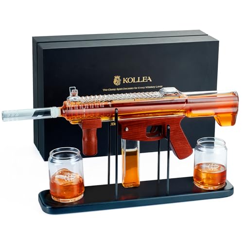 Limited Edition Kollea Gun Whiskey Decanter Set with bullet shot glasses. Unique Anniversary, Birthday, or Military gift for Him, Dad, Husband. Perfect for home bars.