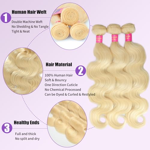 LAPONDAI 613 Blonde Body Wave Human Hair Bundles – 22, 24, 26 Inch