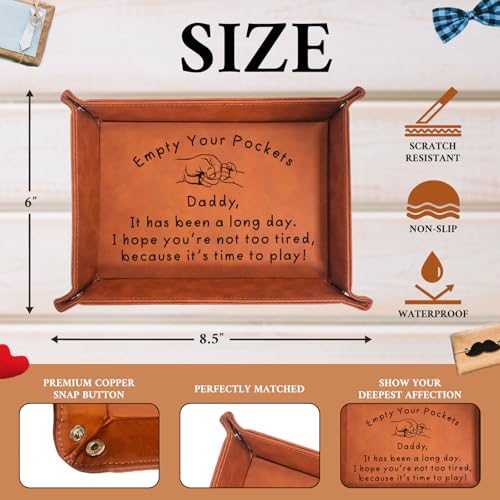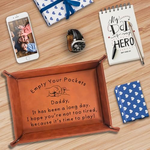 This sentimental leather valet tray is the perfect gift to show appreciation to the special men in your life – Dad, Husband, or Stepdad. Ideal for birthdays, Christmas, or Thanksgiving, it’s a thoughtful present from a wife, son, or daughter. This practical organizer keeps keys, wallets, watches, and other essentials neatly in one place. A truly heartfelt gift that combines utility with a loving message for the best Dad or husband.