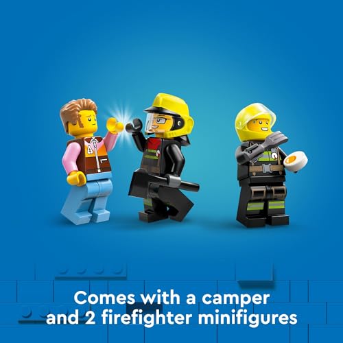 LEGO City 4×4 Fire Truck with Rescue Boat (60412). Pretend play toy for kids 5+. Includes truck, boat, tent, camper, & minifigures. Boosts imagination.