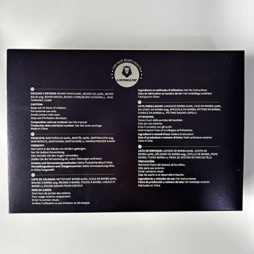 Complete Lionmane beard and mustache grooming kit with balm, wash, oil, brush, and scissors. Perfect for Christmas, birthdays, or anniversaries.