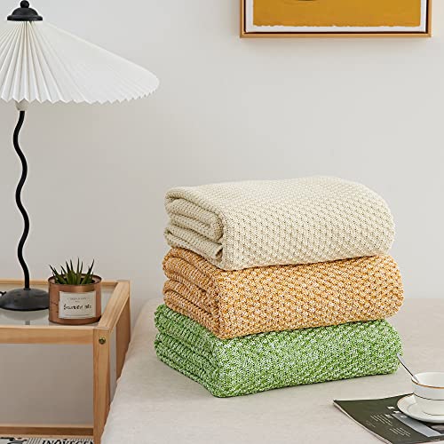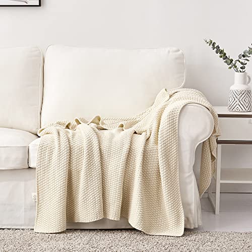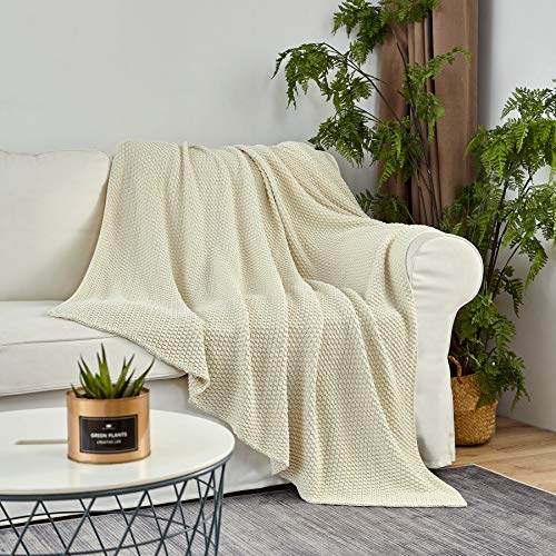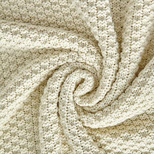 Longhui Cream Cotton Knit Throw – Soft, Cozy 51×63″ Blanket
