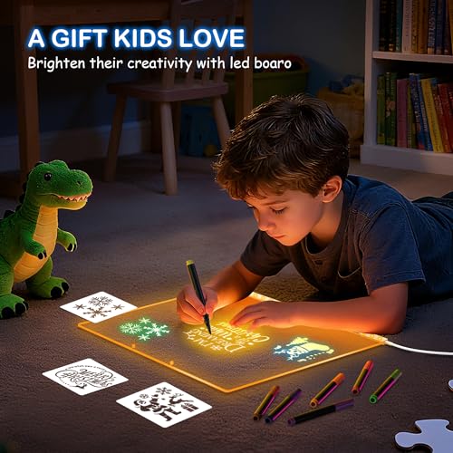 Unleash creativity with LumiBoard LED Drawing Board. Light-up acrylic dry erase board with colors & stand. Perfect Christmas & birthday gift for boys & girls.
