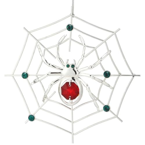 Adorn your tree with this unique Matashi silver-plated spider ornament, beautifully crafted with sparkling red and green crystals. This charming decoration is not only a festive accent for Christmas but also a whimsical touch for Halloween, bringing a blend of elegance and intrigue to your home. It comes with the traditional tinsel legend story, making it a thoughtful and lucky gift. Ideal for collectors or anyone seeking a distinctive holiday piece.