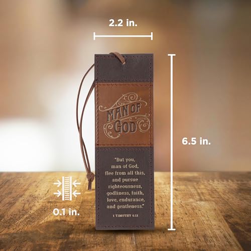 A truly inspiring accessory for men of faith, this premium vegan leather bookmark features the “Man of God” scripture in elegant gold text. The sturdy, slim design, complemented by a knotted cord, makes it a practical and beautiful reading companion. Its light and dark brown tones exude sophistication. Perfect for personal use, Bible study, or as a powerful, encouraging gift for any man dedicated to his faith.